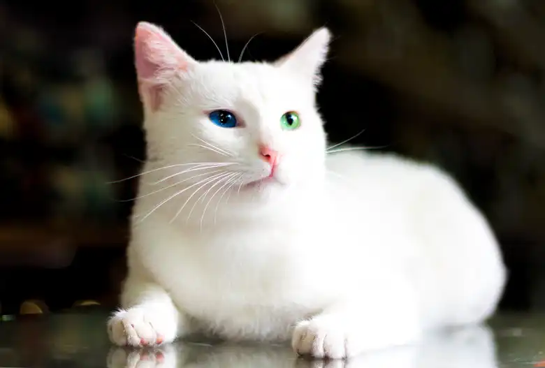 The most common and popular color for the Turkish Angora cat is a white coat with blue eyes. However, many other colors and patterns and eye colors are accepted under the breed standard.