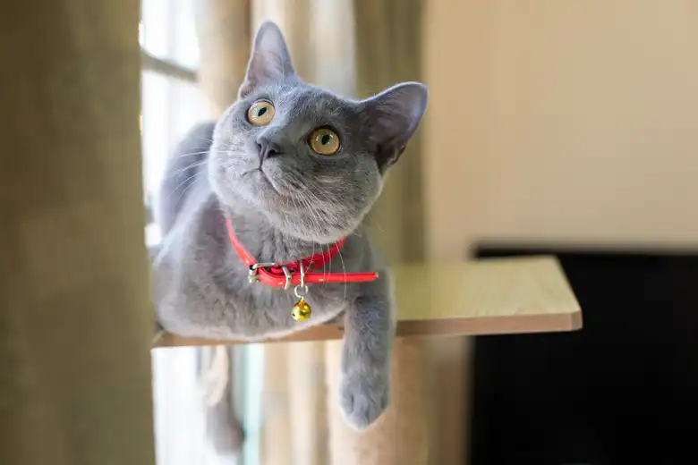 These are energetic cats that love to play and exercise. They love to learn tricks, and they like to go outside and walk on a leash. However, although they love toys, they're not great at sharing, so make sure to have plenty of toys to go around. Korats are also highly intelligent. They love to learn and solve puzzles, so tricks or puzzle toys make a great way to keep them occupied.