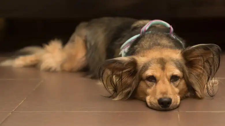 Sometimes, a dog develops anxiety from an internal factor, like a sickness. Like separation anxiety, illness-induced anxiety can occur in both newly adopted dogs and dogs that have never lived in a shelter. It's caused by unwanted symptoms of a health condition, such as itchiness, pain, or general discomfort. You probably know someone who gets grumpy or unpleasant in some other way when they're experiencing symptoms of an illness. Dogs can respond in the same way.