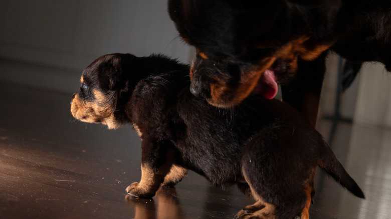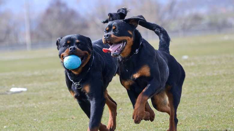 If there are any physical differences between the American and German Rottweiler, it's the result of breeding decisions. Those breeders who wish for their dogs to achieve the purebred recognition must follow what is mandated by the gold standard: the ADRK — an acronym for Allgemeiner Deutscher Rottweiler Klub (German General Rottweiler Club) — enforces a strict breeding protocol. This protocol mandates that all purebred Rottweilers worldwide must adhere to a specific physical look as stipulated by the definitive Rottweiler registry in Germany, established in 1907. This includes a maximum size of 27 inches in length and a chest that accounts for roughly half of the dog's overall body length. Eyes, meanwhile, must be almond shaped and dark brown in color — any other shade, including yellow is disqualifying. A specific number of teeth is also required to meet the German standard; 42 to be exact.