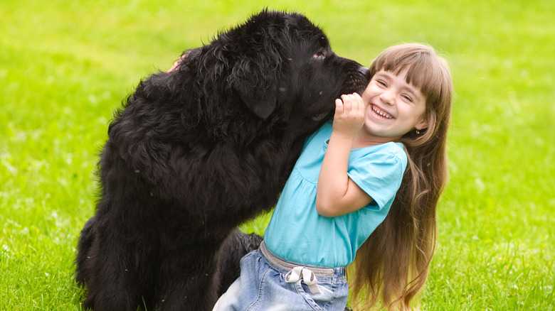 Newfies easily fit into the giant breed category thanks to their large size, earning them the "giant" part of their title. The gentle part comes from their breed standard. According to the (AKC), a sweet temperament is the "most important single characteristic of the breed." They're also known as the "nanny dog," a nod to their exceptional skill with children.
