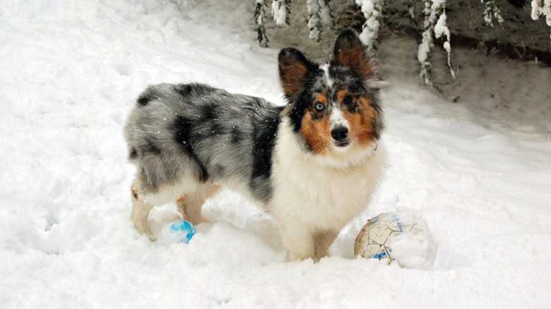 This corgi mix is ready for the snow!