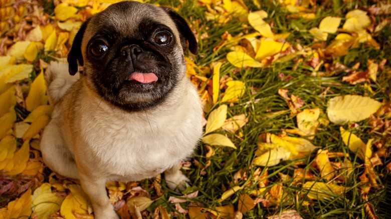 The flat faces of pugs may be endearing, but the feature places them among the brachycephalic breeds, which means they inhale primarily through their mouths. Such air intake can result in a gassy dog, a condition pet parents can't do much about. However, paying attention to what you feed it and promoting an active lifestyle can help to work out all those farts and lessen potential foulness. "Ensuring your dog has a balanced diet will be key in reducing any gastrointestinal (GI) issues," Dr. Whitney Miller, DVM, MBA, DACVPM, advised Rover. You can try a gradual transition to an easily-digestible food with more high-quality protein.